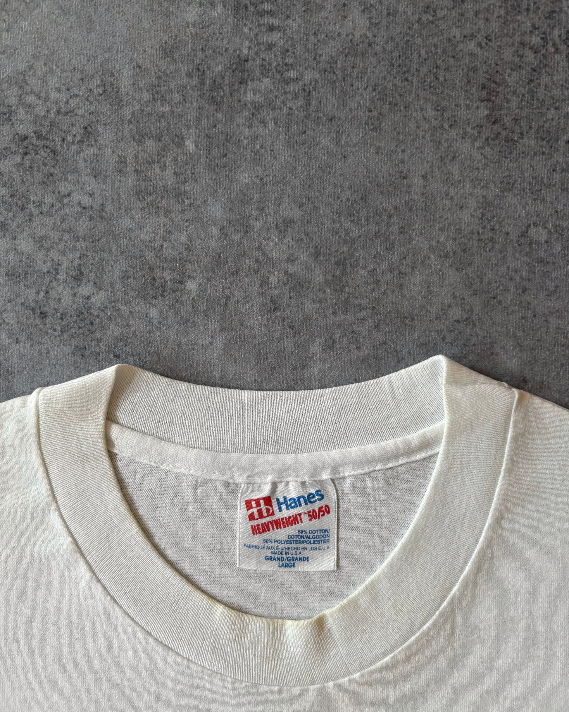 Printed on a Hanes Heavyweight 50/50 cotton/polyester blend tee.