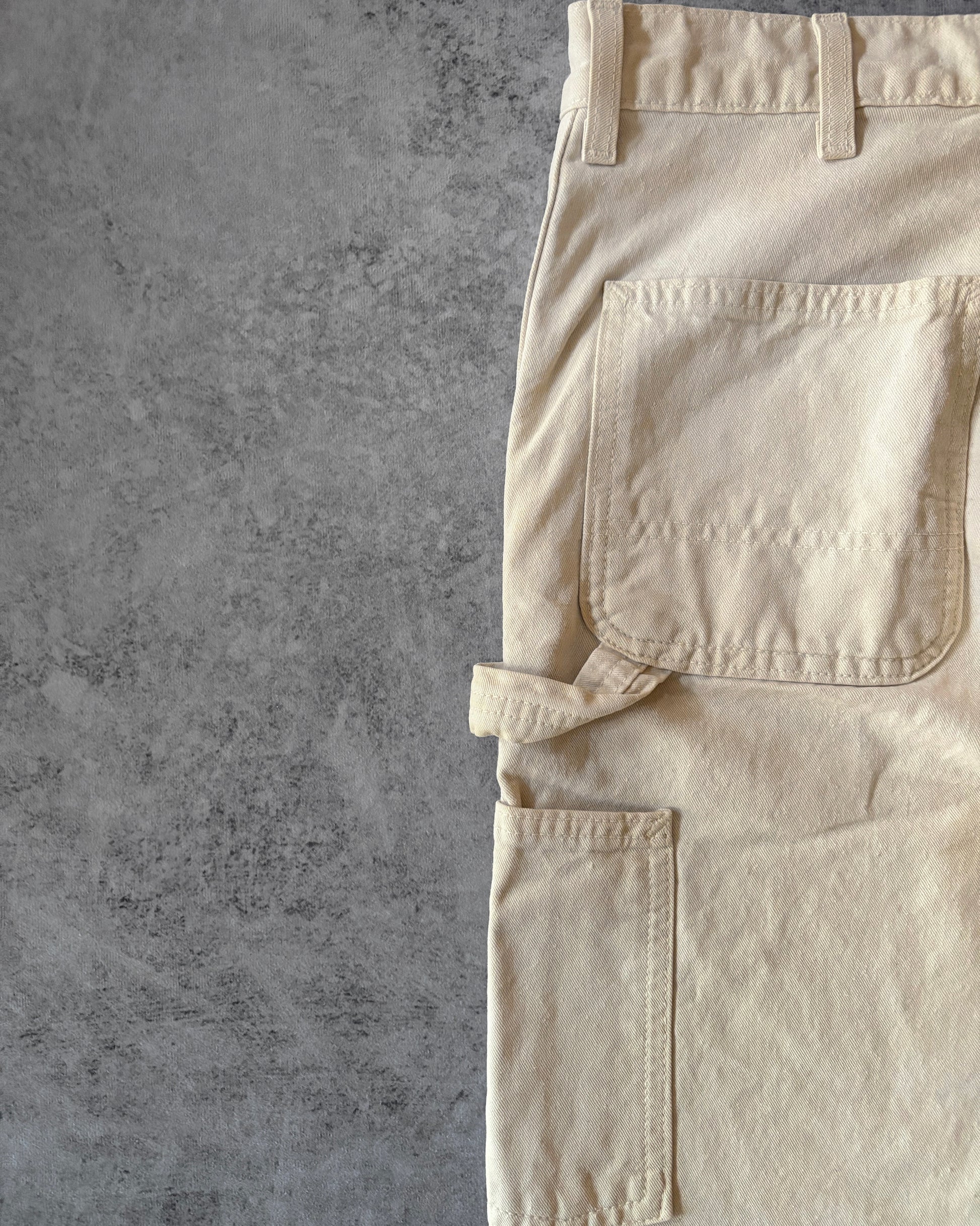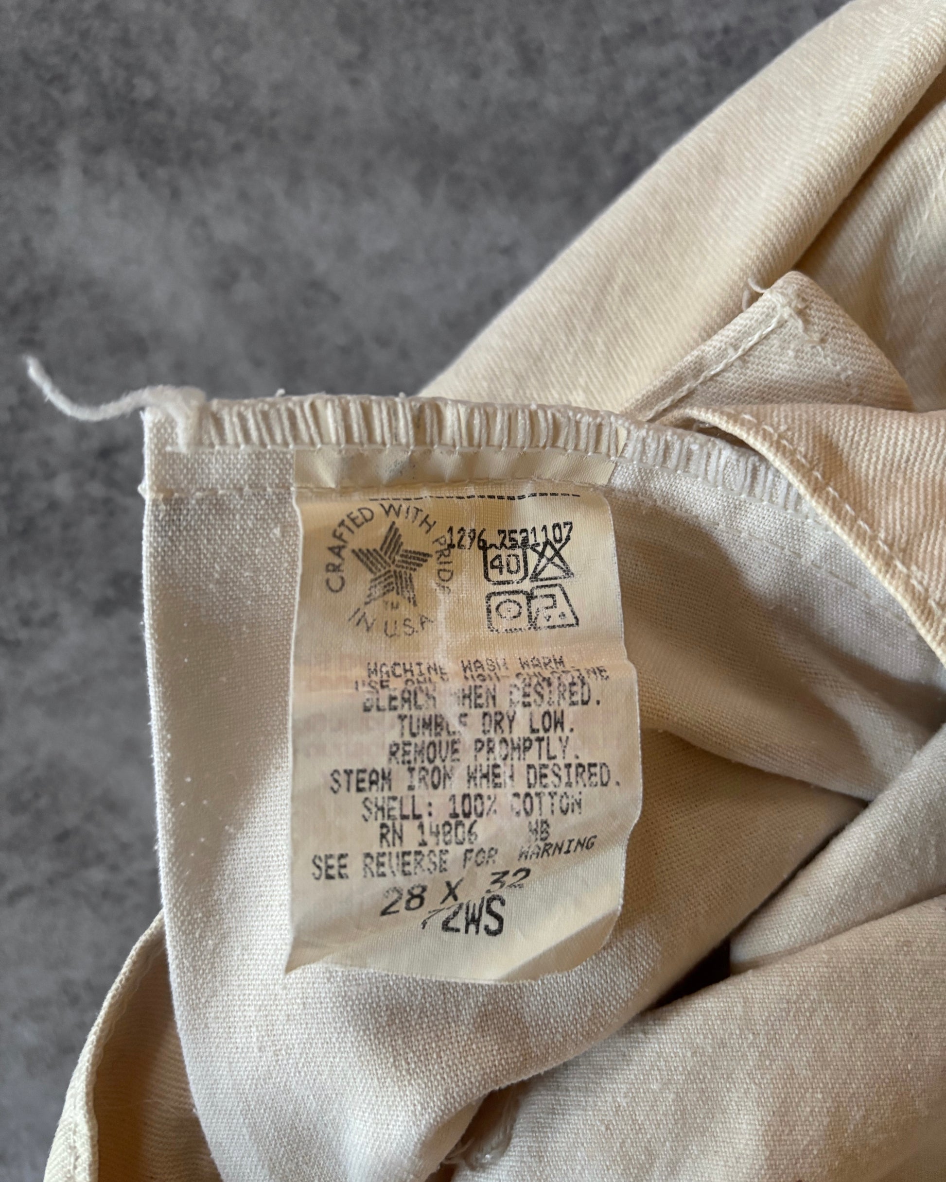 Vintage Carhartt 72WS Dungaree painter's trousers, straight leg, loose fit, single knee gusset, natural white, dated December 1996. 100% cotton. Proudly made in the USA.