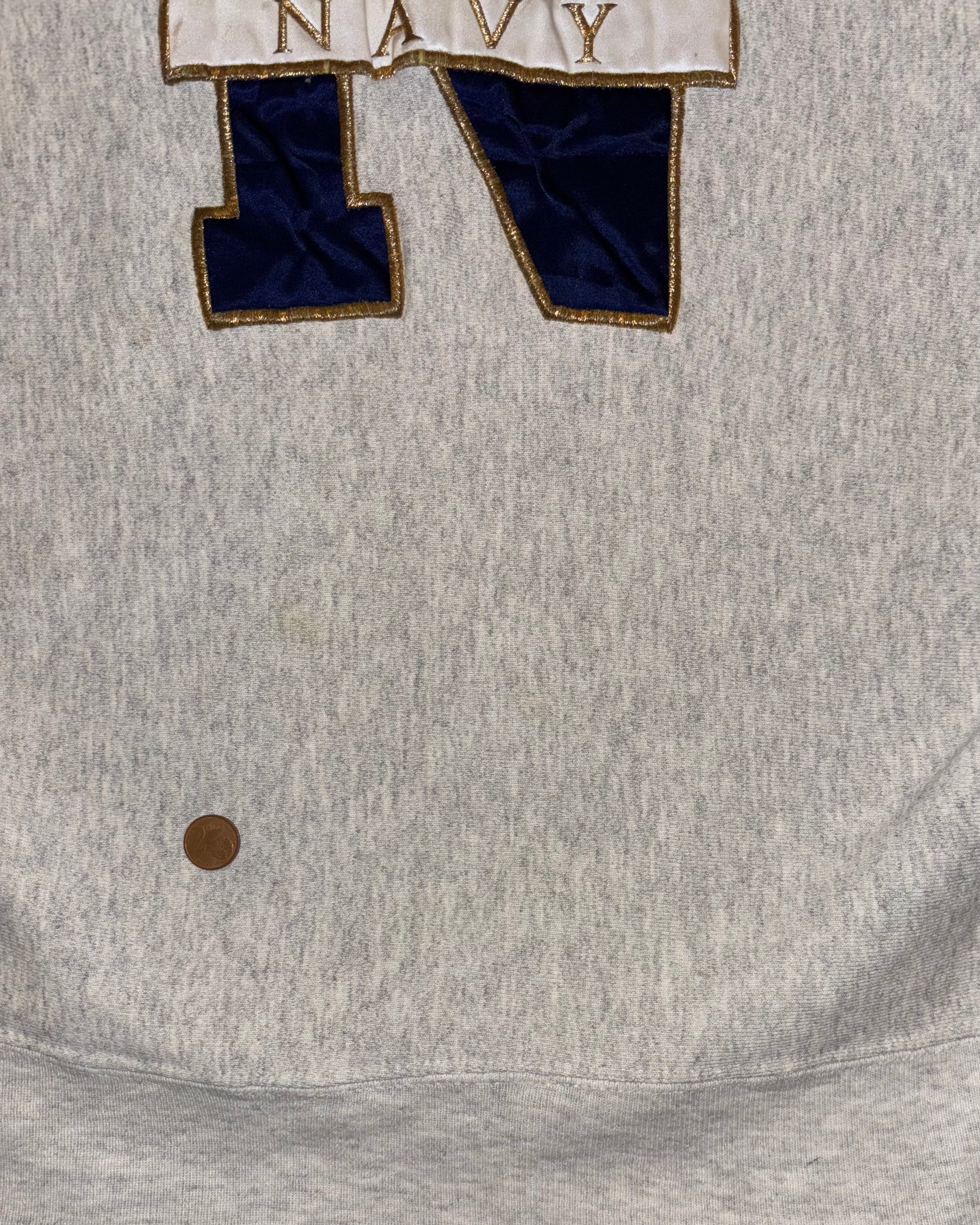 Vintage Navy embroidered Reverse Weave sweatshirt from the 1990s. 🪴