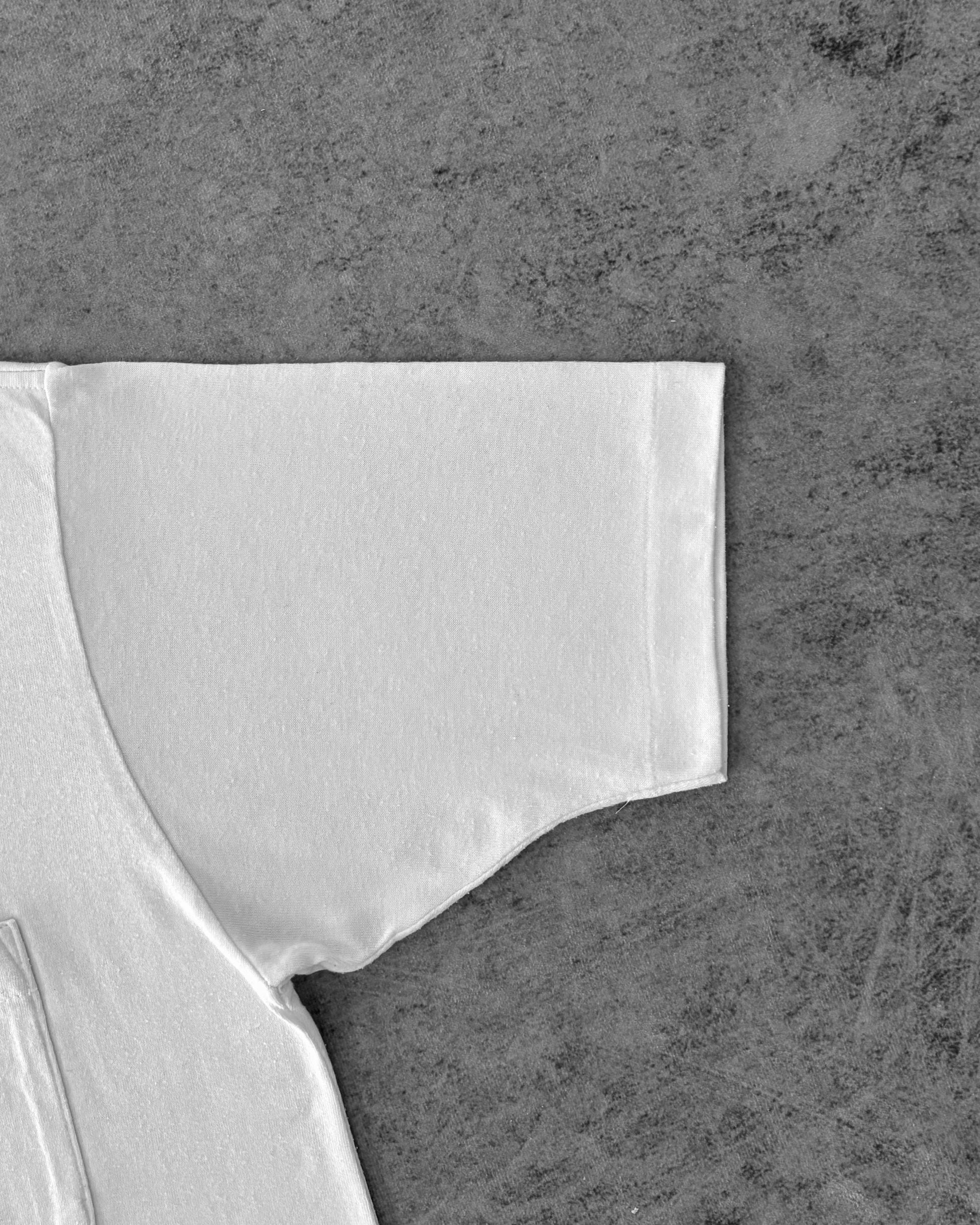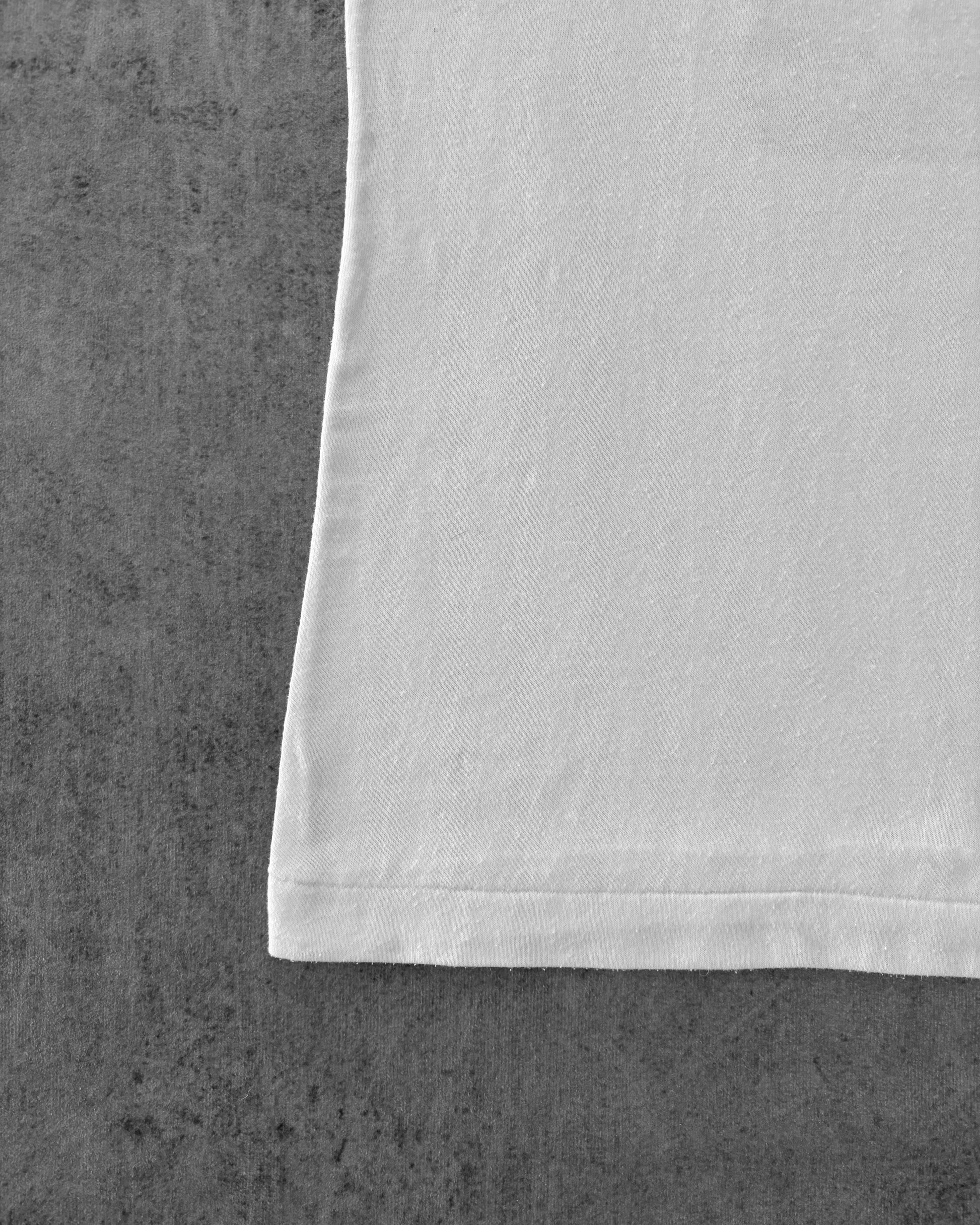 Crafted from a white Hanes Activewear polo shirt, this 50/50 cotton/polyester shirt features a chest pocket, two-button placket, and a single-stitch hem. Made in the USA.