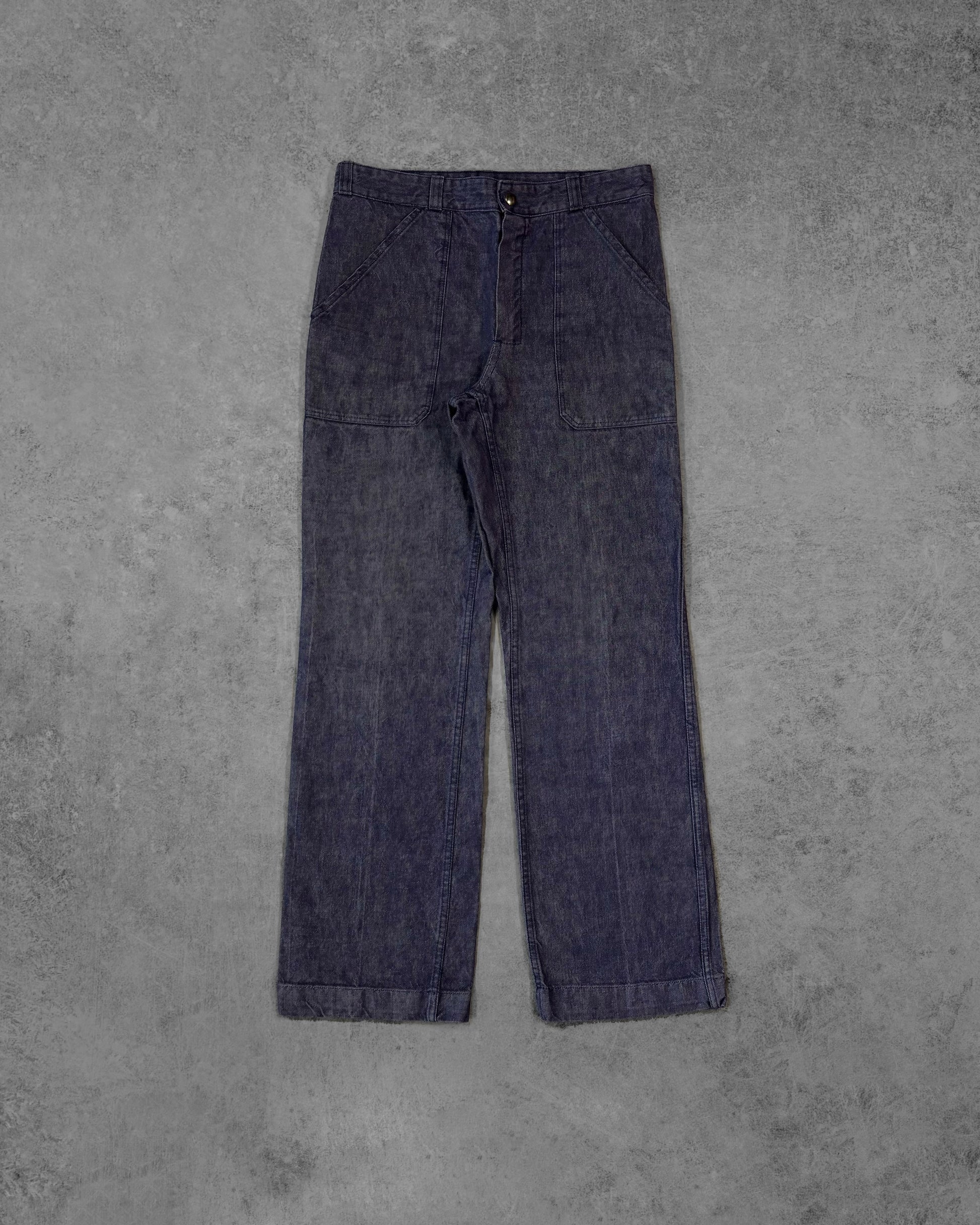 Vintage 1980s French Workwear Denim Fatigue Pants – Wide Leg Utility