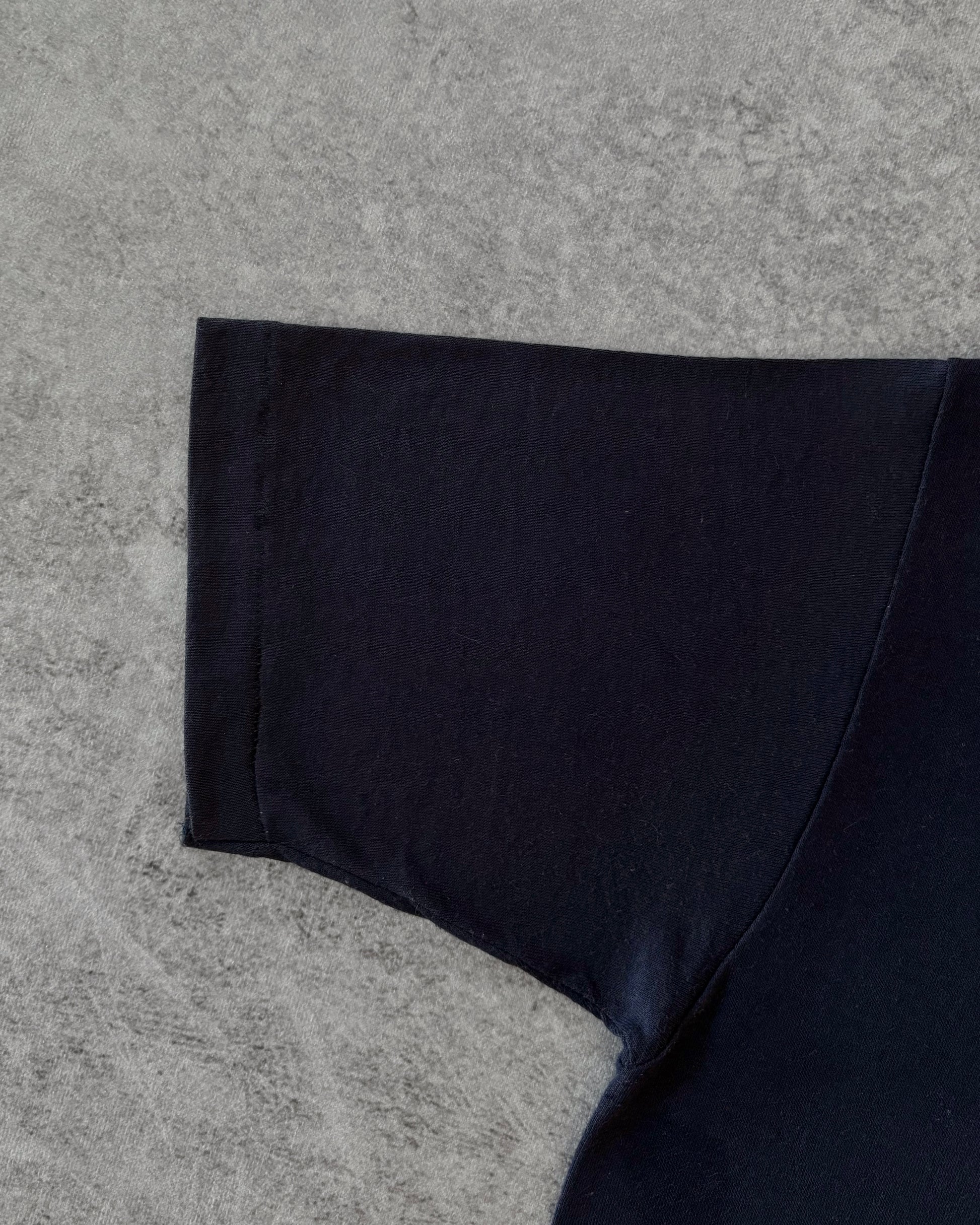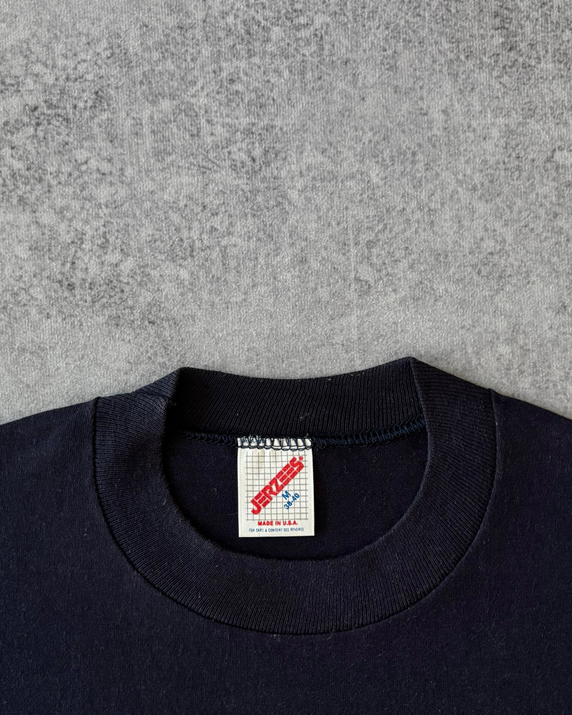 Stampata su una Jerzees blu navy, morbida al tatto, cotone tipico dell’epoca, single stitch. Made in USA.
