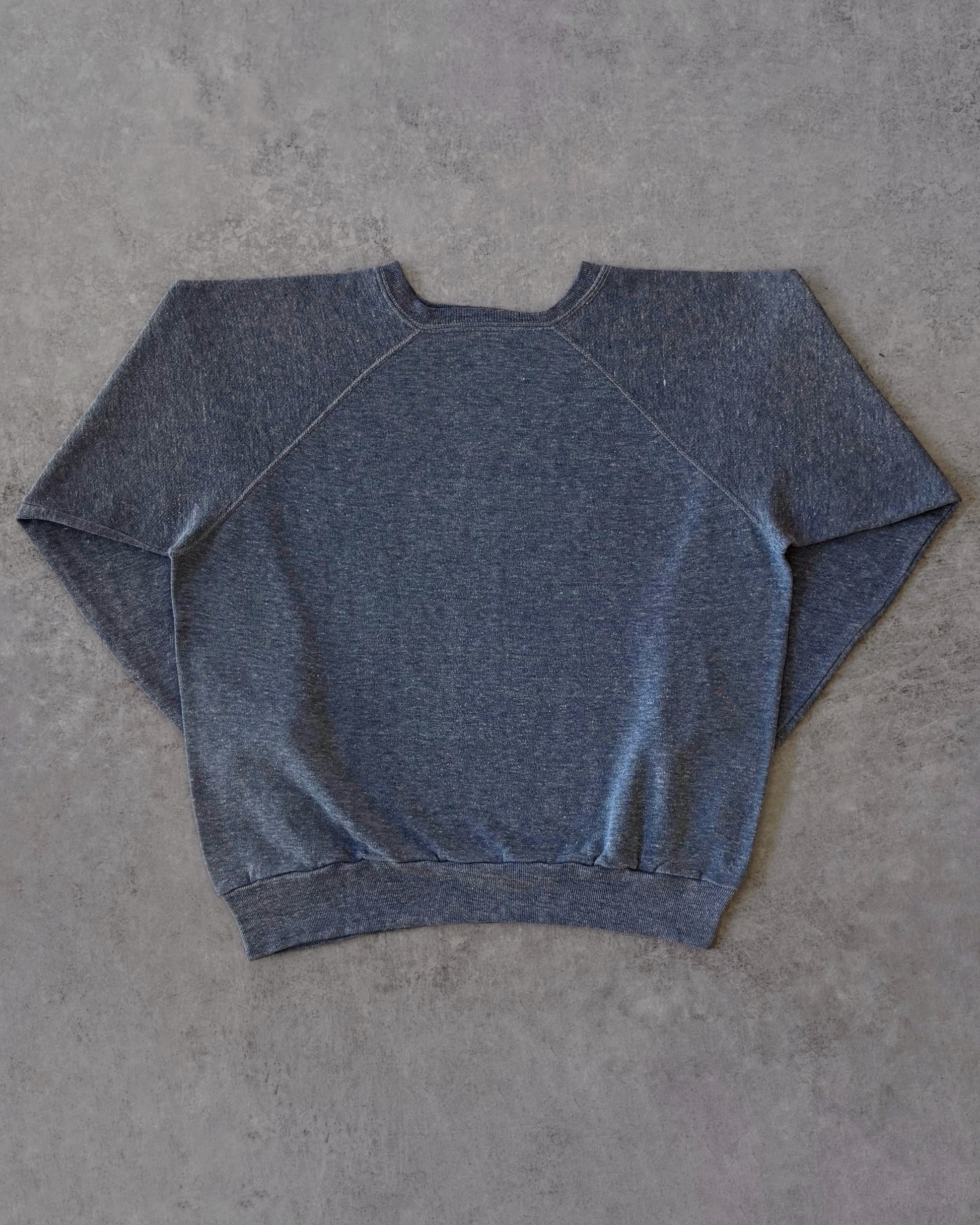 Felpa vintage di Superman del 1978, ufficialmente licenziata da DC Comics. Presenta il celebre logo “S” rosso/giallo stampato su un corpo raglan color blu mélange.