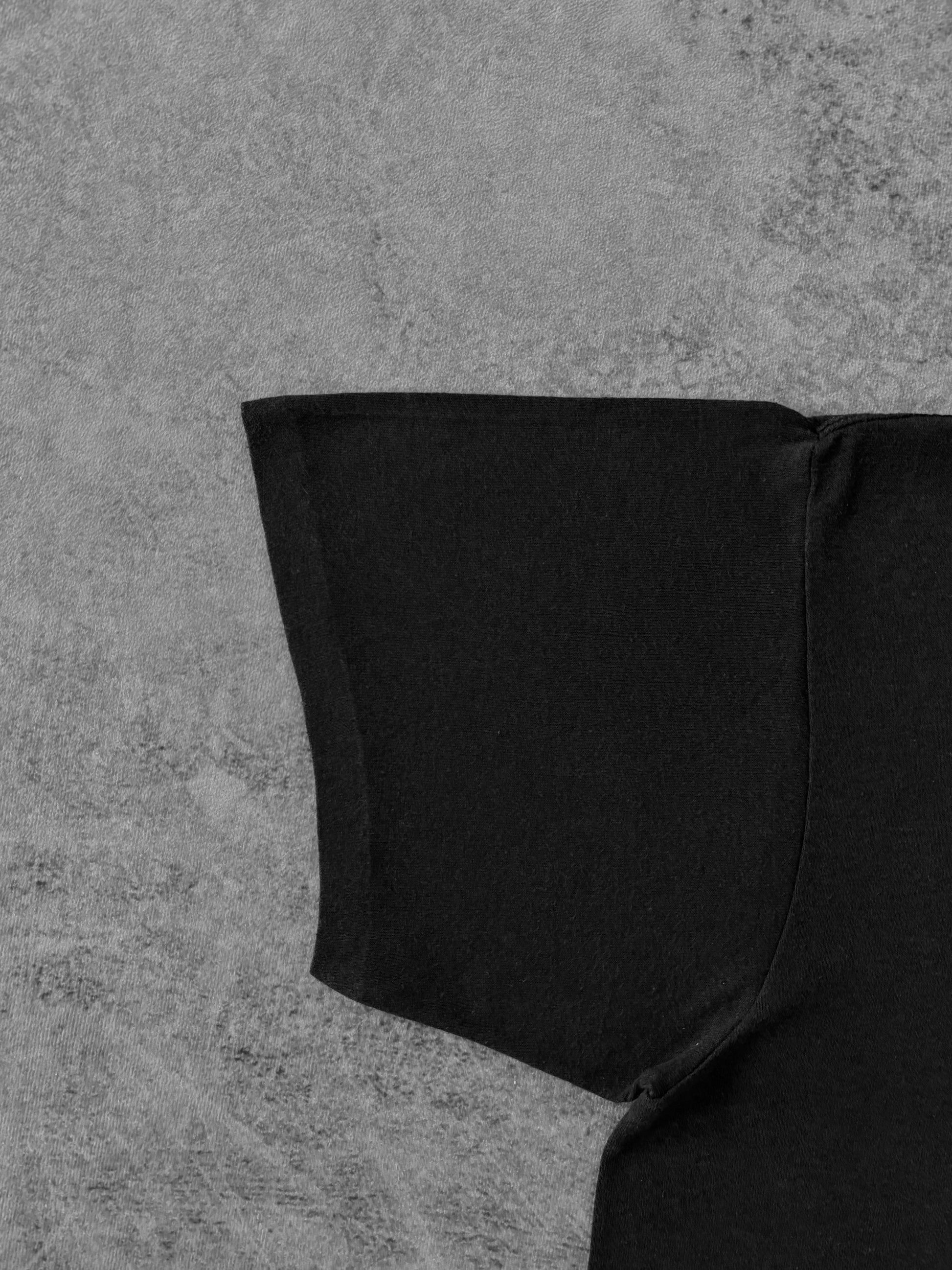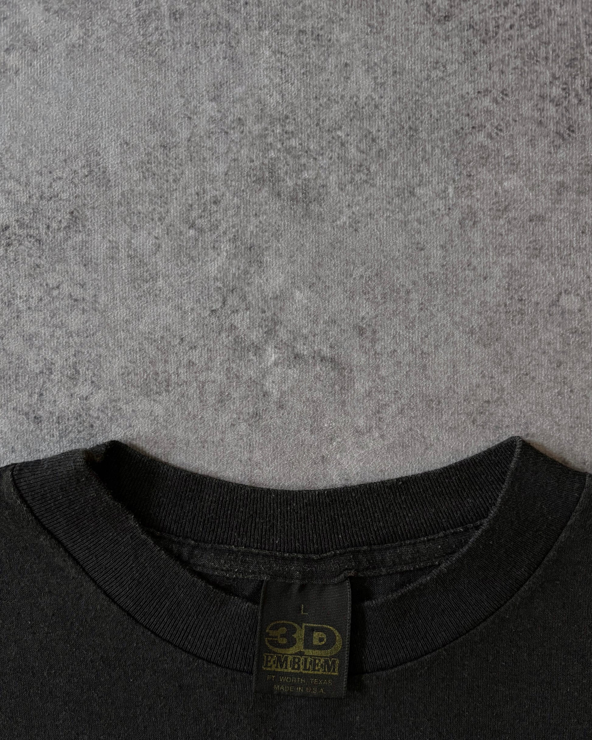 Realizzata in cotone/poliestere nero single stitch, Made in USA, con etichetta originale 3D Emblem e una patina di scolorimento naturale che ne esalta l’autenticità vintage.