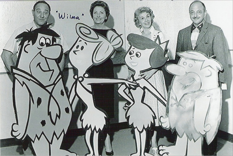 Presenta un vivace logo Flintstones a colori in stile planetario.