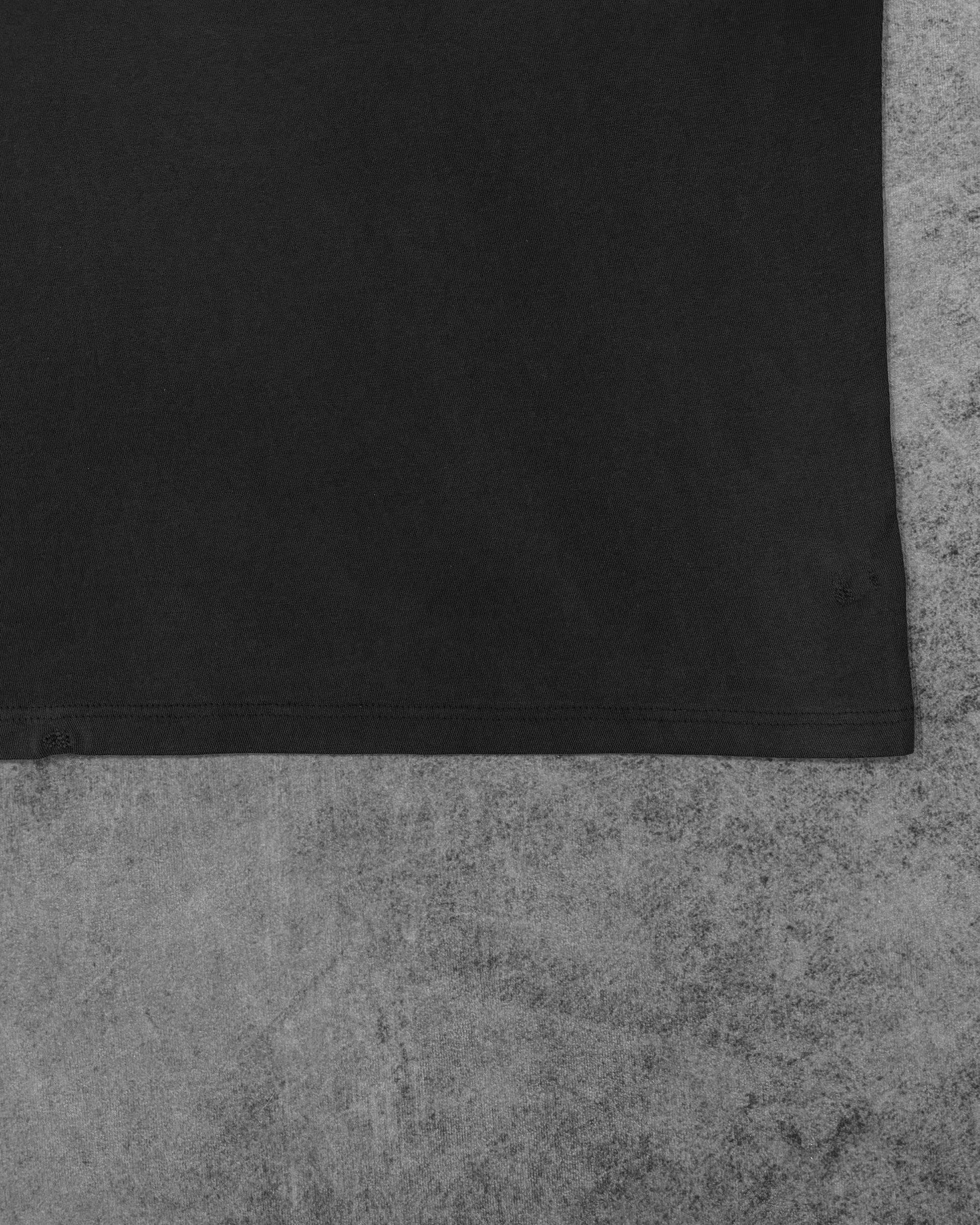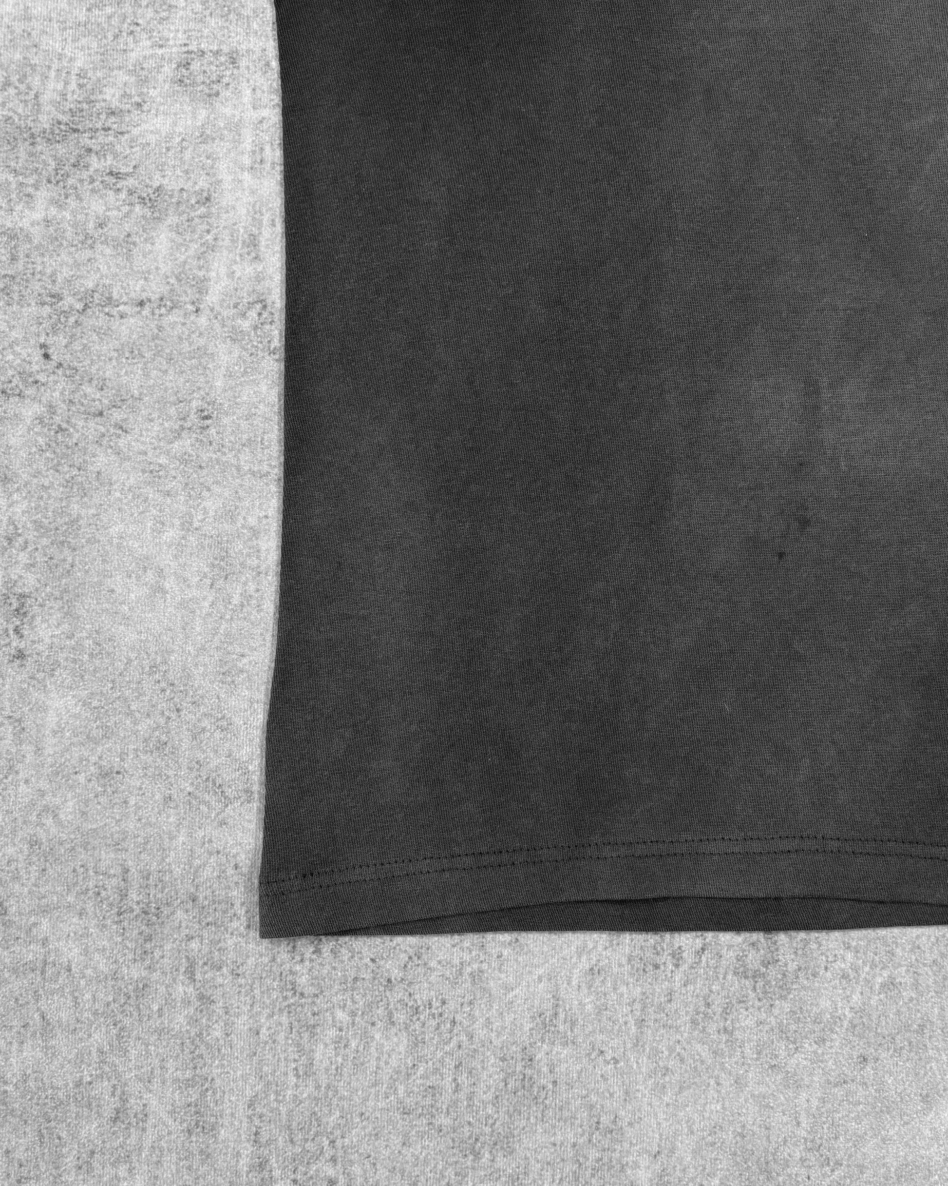 Il capo presenta una colorazione nera naturalmente slavata/distressed, che dona un’estetica vissuta in stile vintage nonostante la produzione più recente.