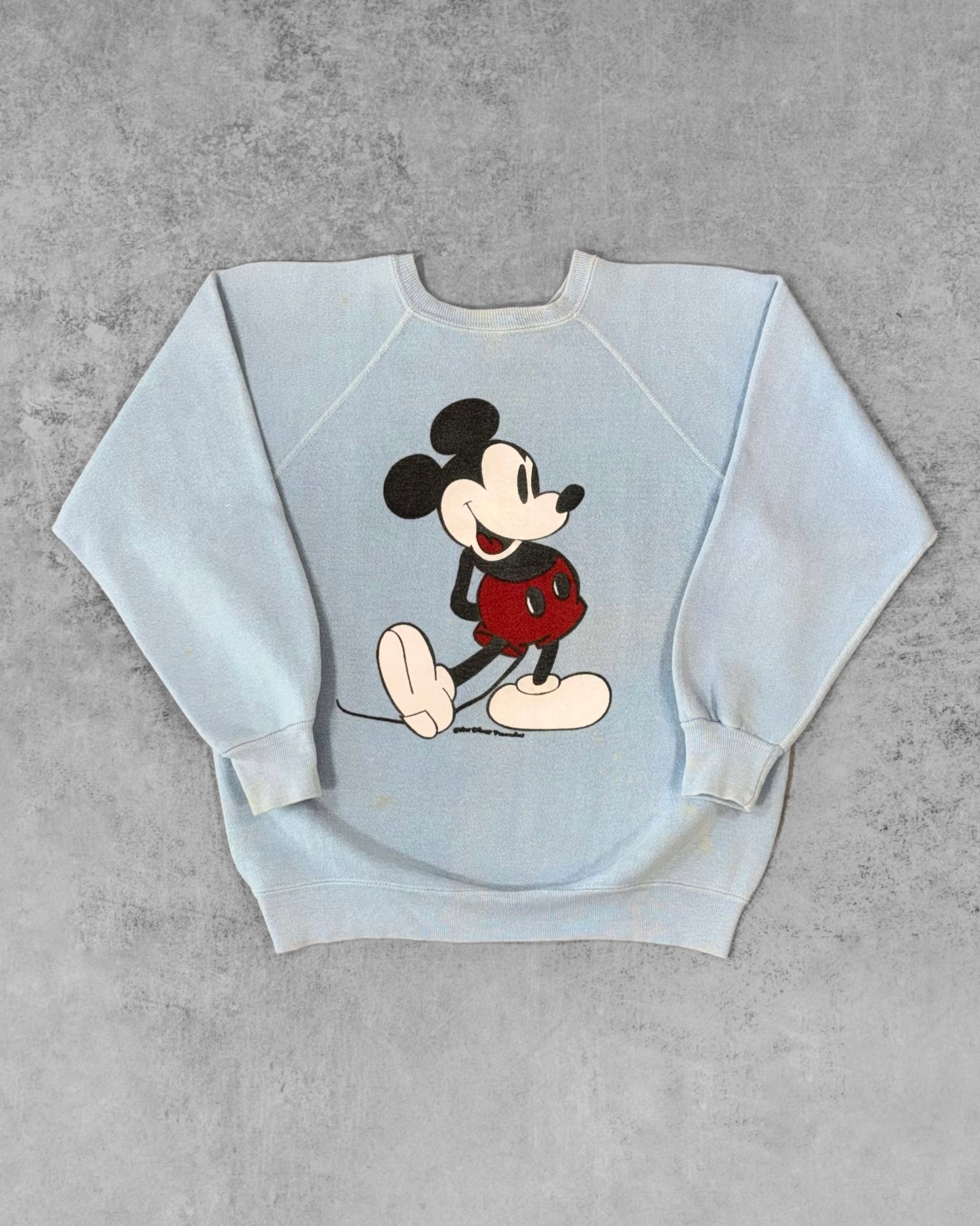 Felpa vintage Mickey Mouse anni ’70 con classica grafica early Disney e stampa serigrafica splendidamente invecchiata.
