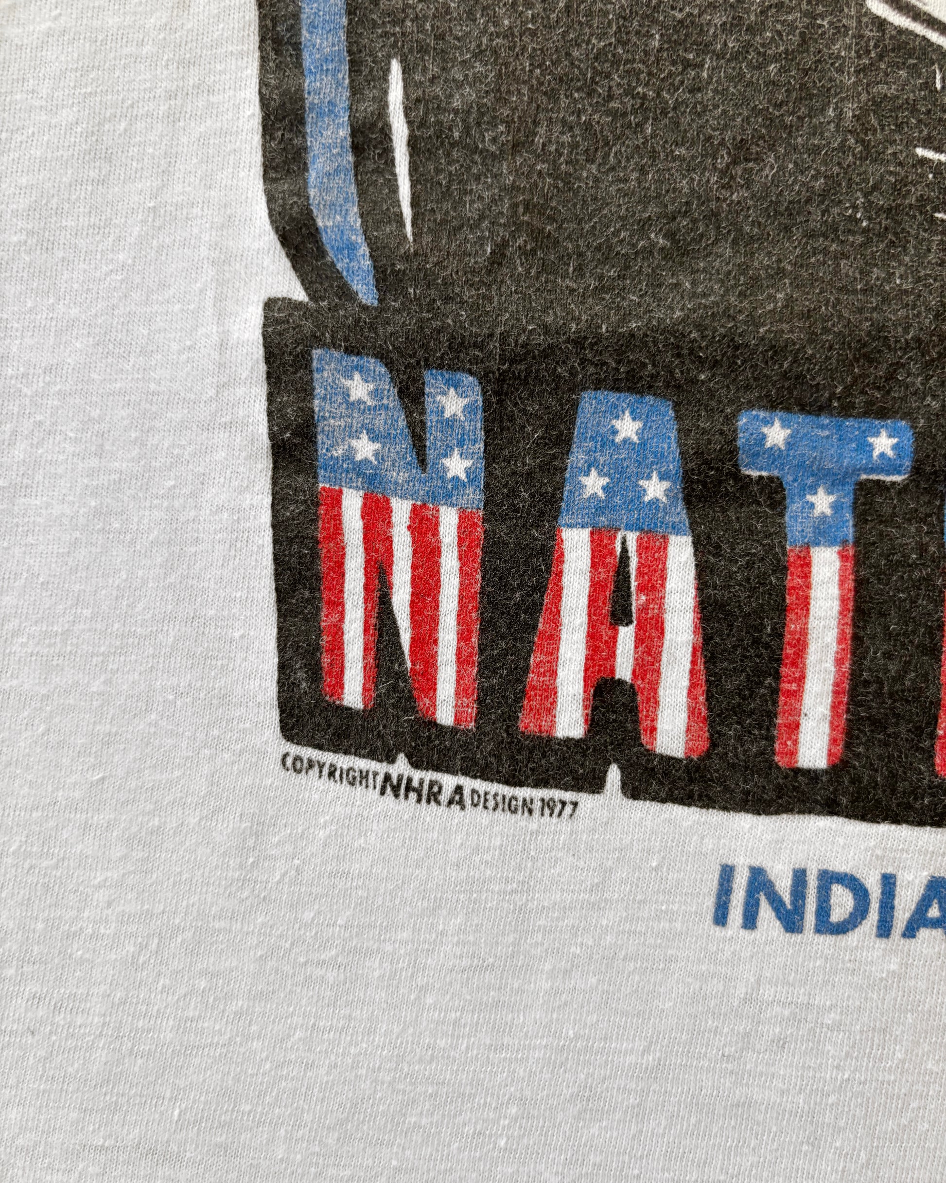 Maglietta vintage con stampa del 1977 NHRA U.S. Nationals, su t-shirt anni ’70 Screen Stars single stitch, Made in USA.