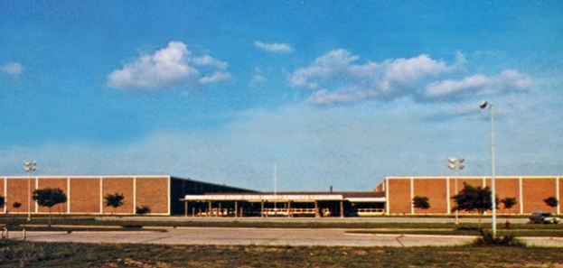 Vintage 1980s Dobie Longhorns T-shirt, printed on a soft Screen Stars Best blank and made in the USA. Features a bold orange and black circular graphic with the classic Dobie Longhorns “Hook ’Em” hand sign at center.