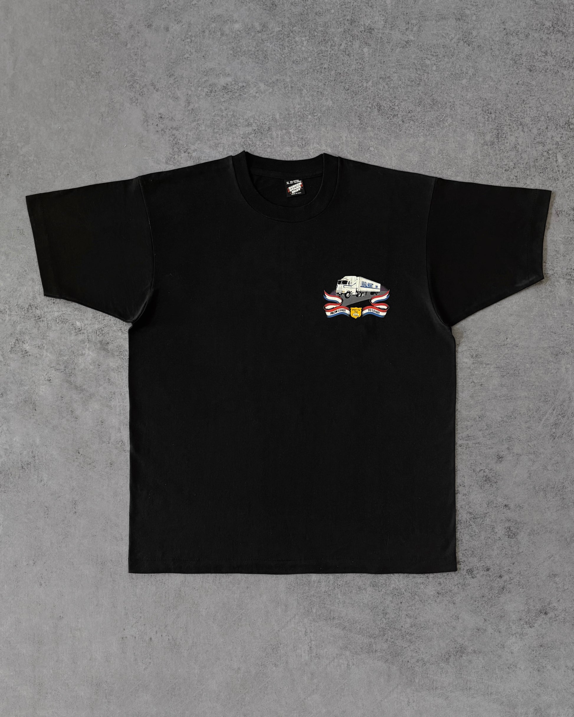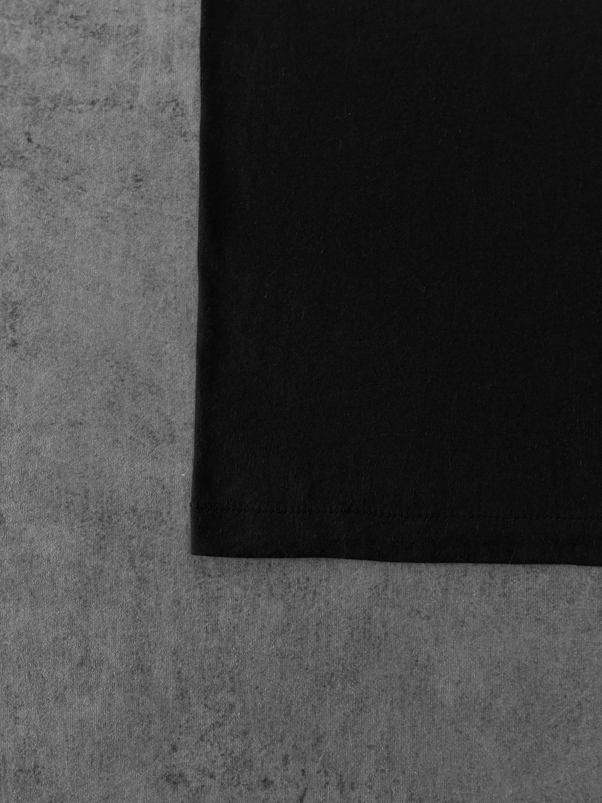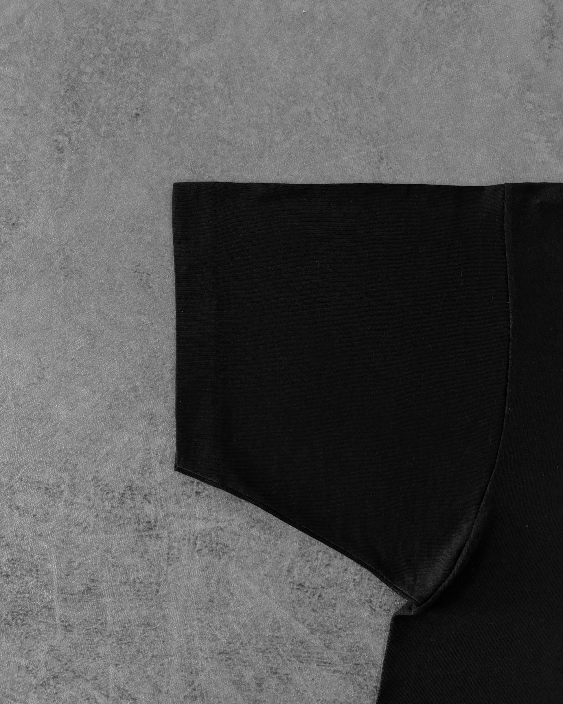 Il fronte presenta una piccola stampa coordinata sul petto. Il corpo in cotone nero e l’etichetta Screen Stars Best collocano chiaramente questo capo tra la fine degli anni ’80 e l’inizio degli anni ’90.