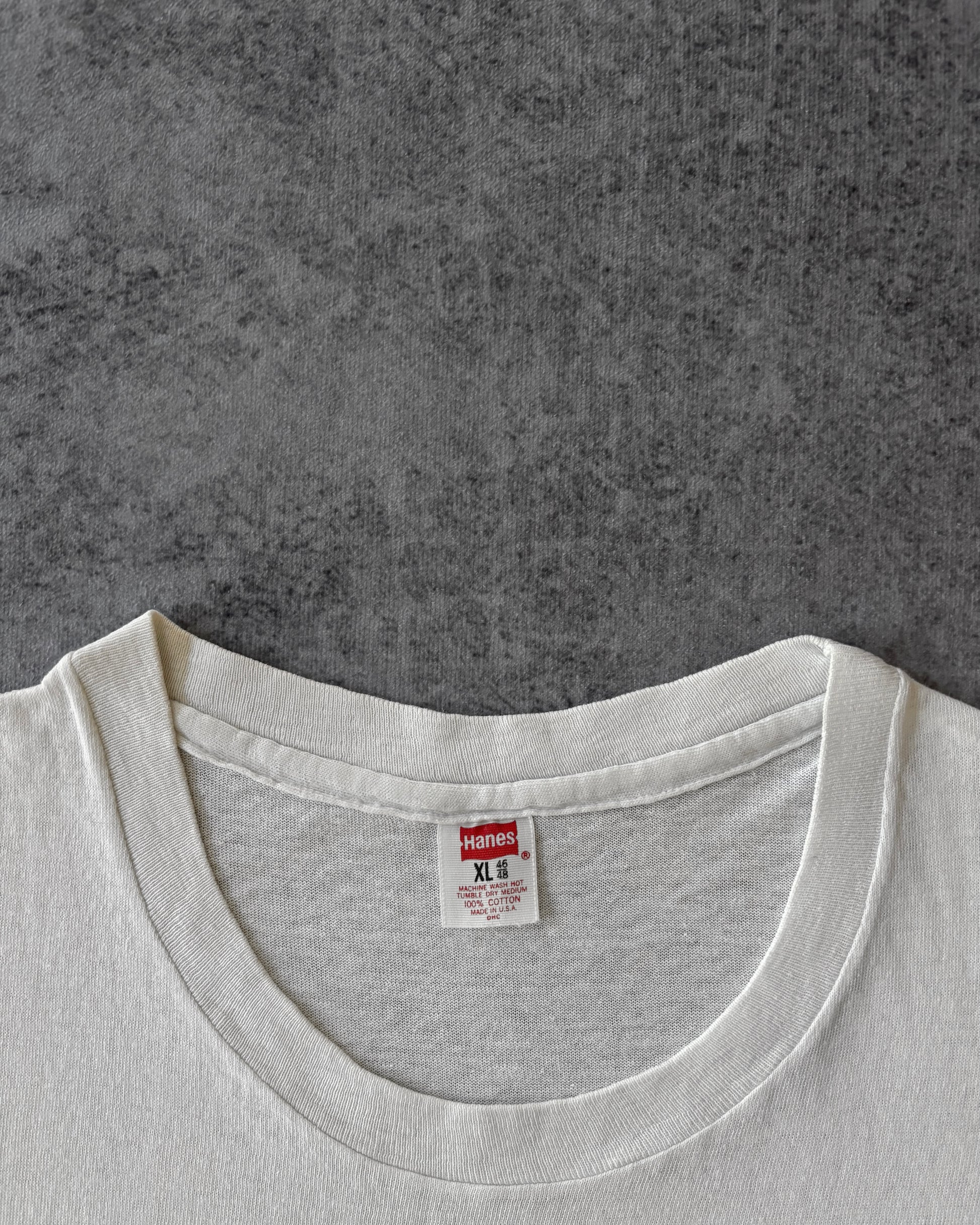 Stampata su blank Hanes 100% cotone Made in USA, databile agli anni ’80 in base allo stile dell’etichetta.