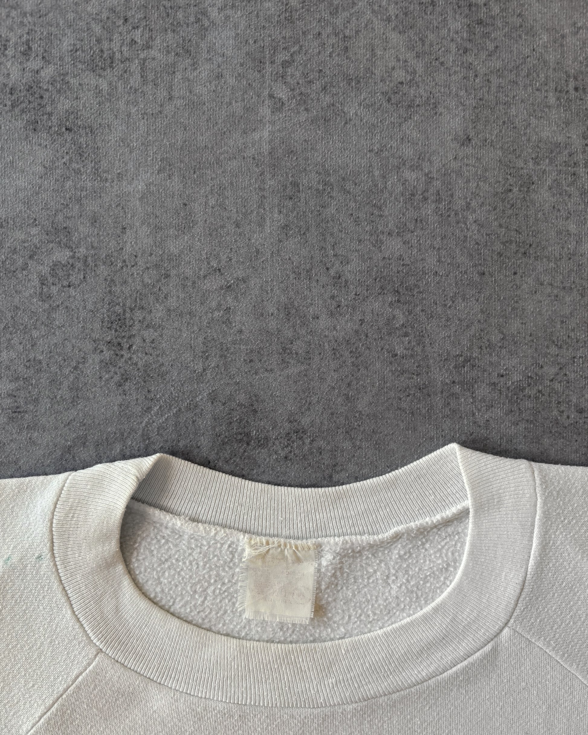 Felpa vintage girocollo personalizzata nel 1986 con una caricatura audace, aerografata a mano, raffigurante un sottufficiale dell’esercito americano (probabilmente un Drill Sergeant o un ufficiale della Military Police). L’opera è firmata Cesar ’86.