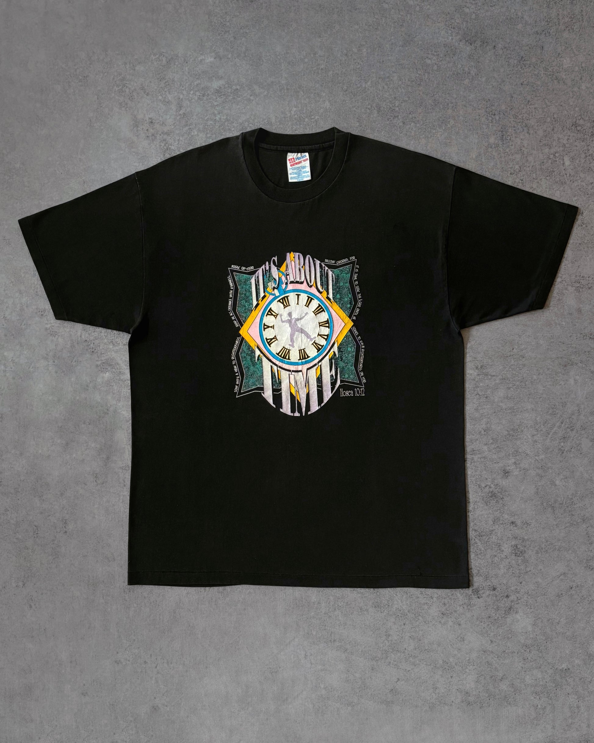 T-shirt vintage “It’s About Time” dei primi anni ’90, stampata su una maglia Hanes Heavyweight 50/50.