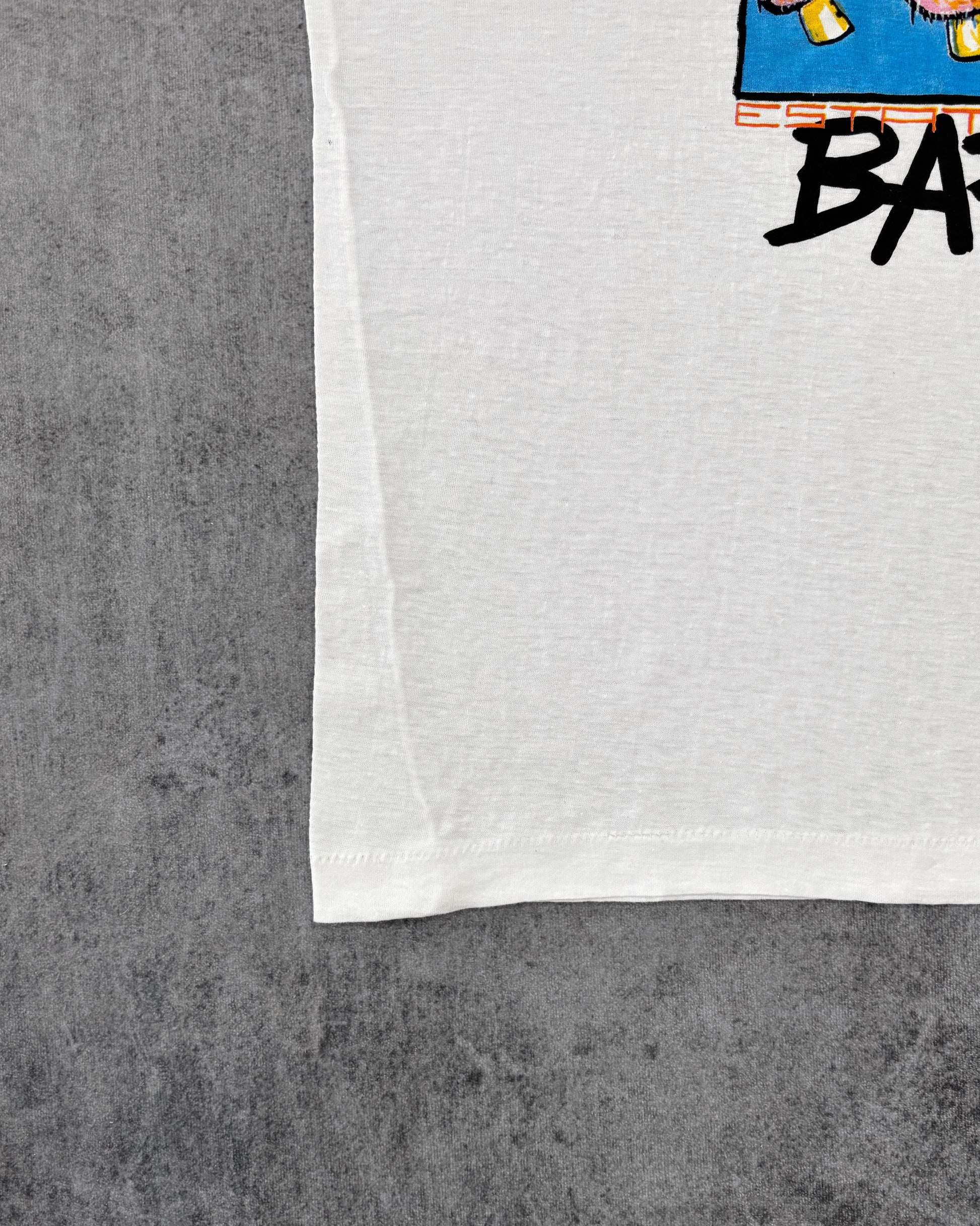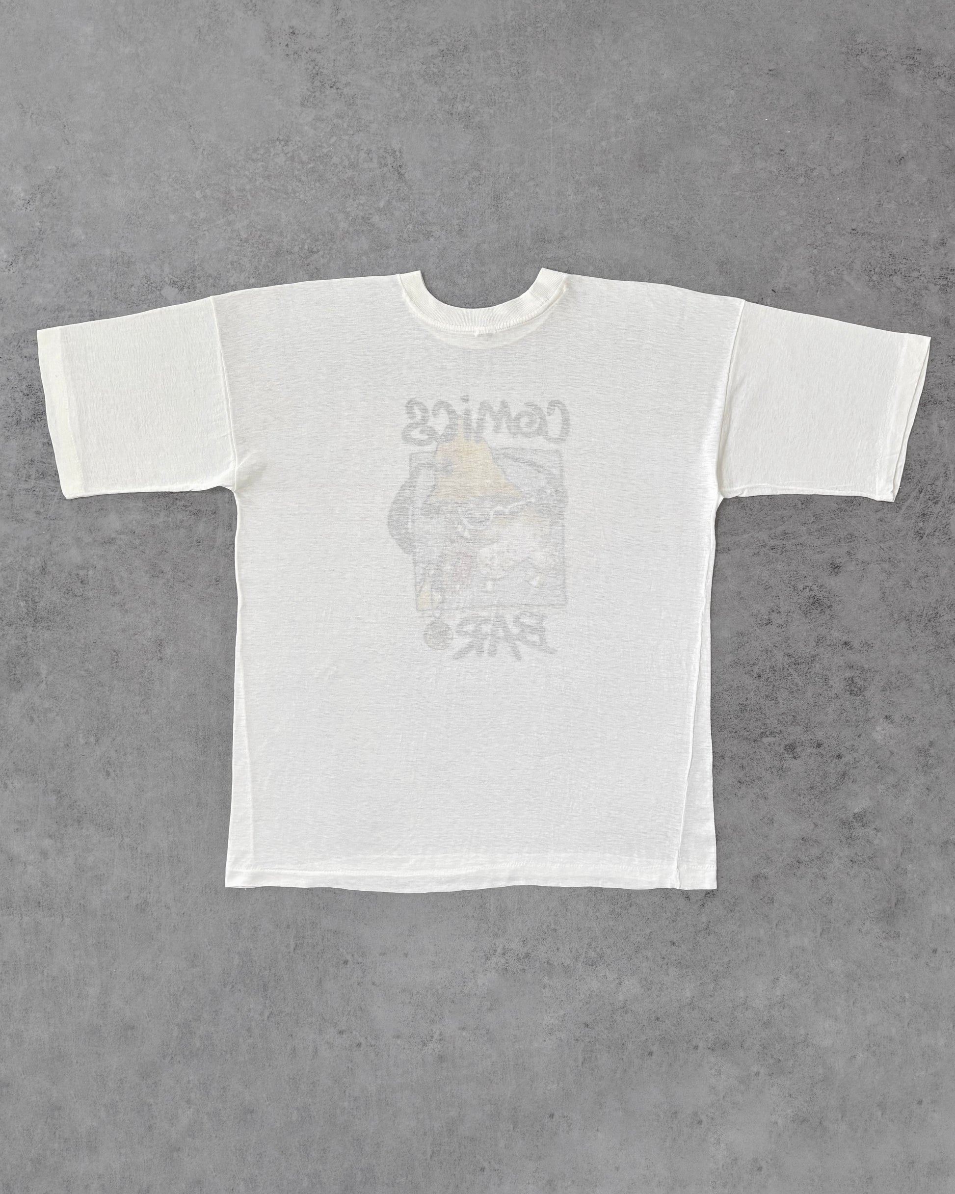 T-shirt grafica vintage metà anni ’90 con stampa cartoon audace che raffigura una versione stilizzata e irriverente di Pluto in stile underground/stoner.