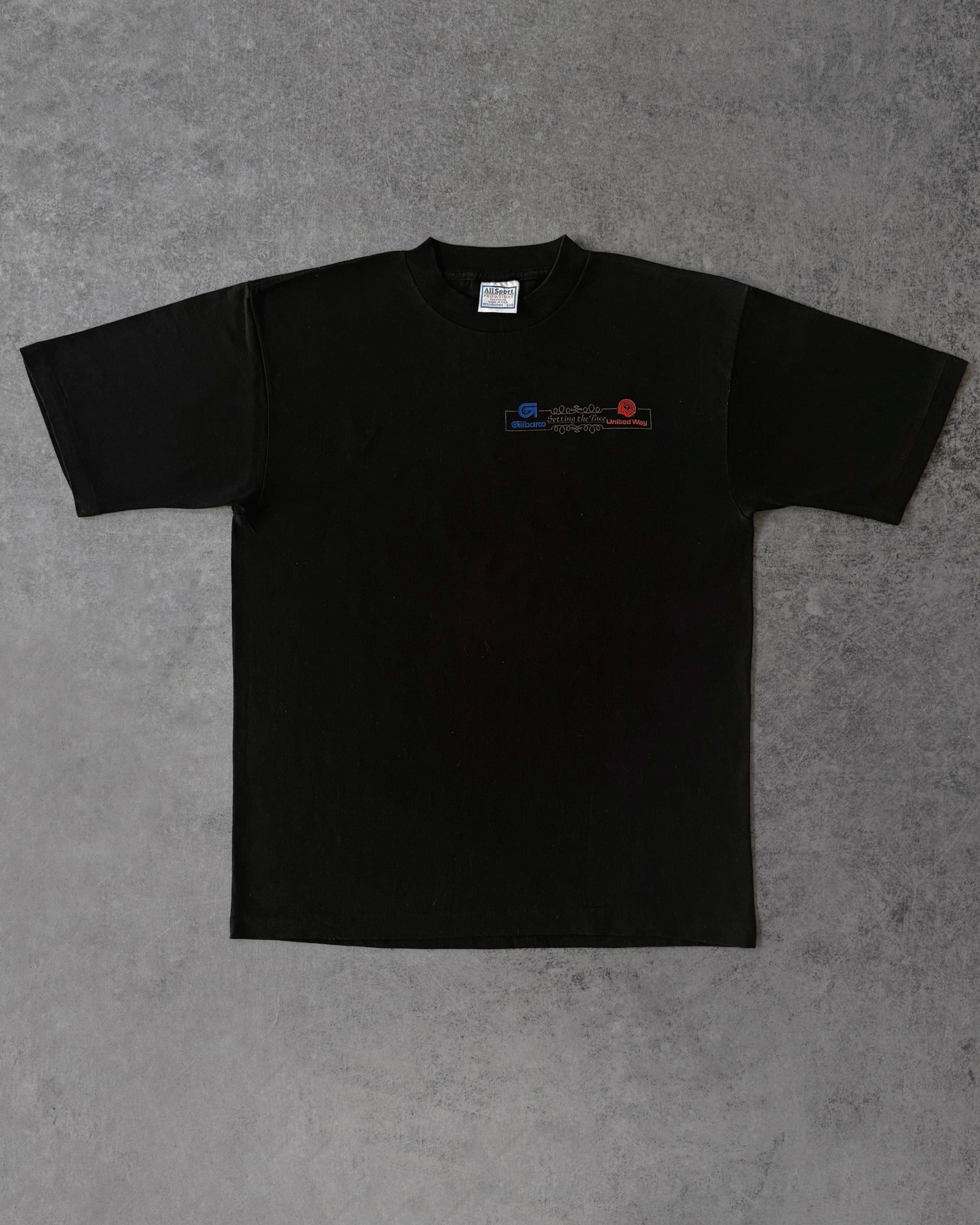 Vintage T-shirt di metà anni ’90, realizzata su blank All Sport Proweight Made in USA, con grafica fronte/retro creata per una campagna benefica aziendale Gilbarco – United Way.