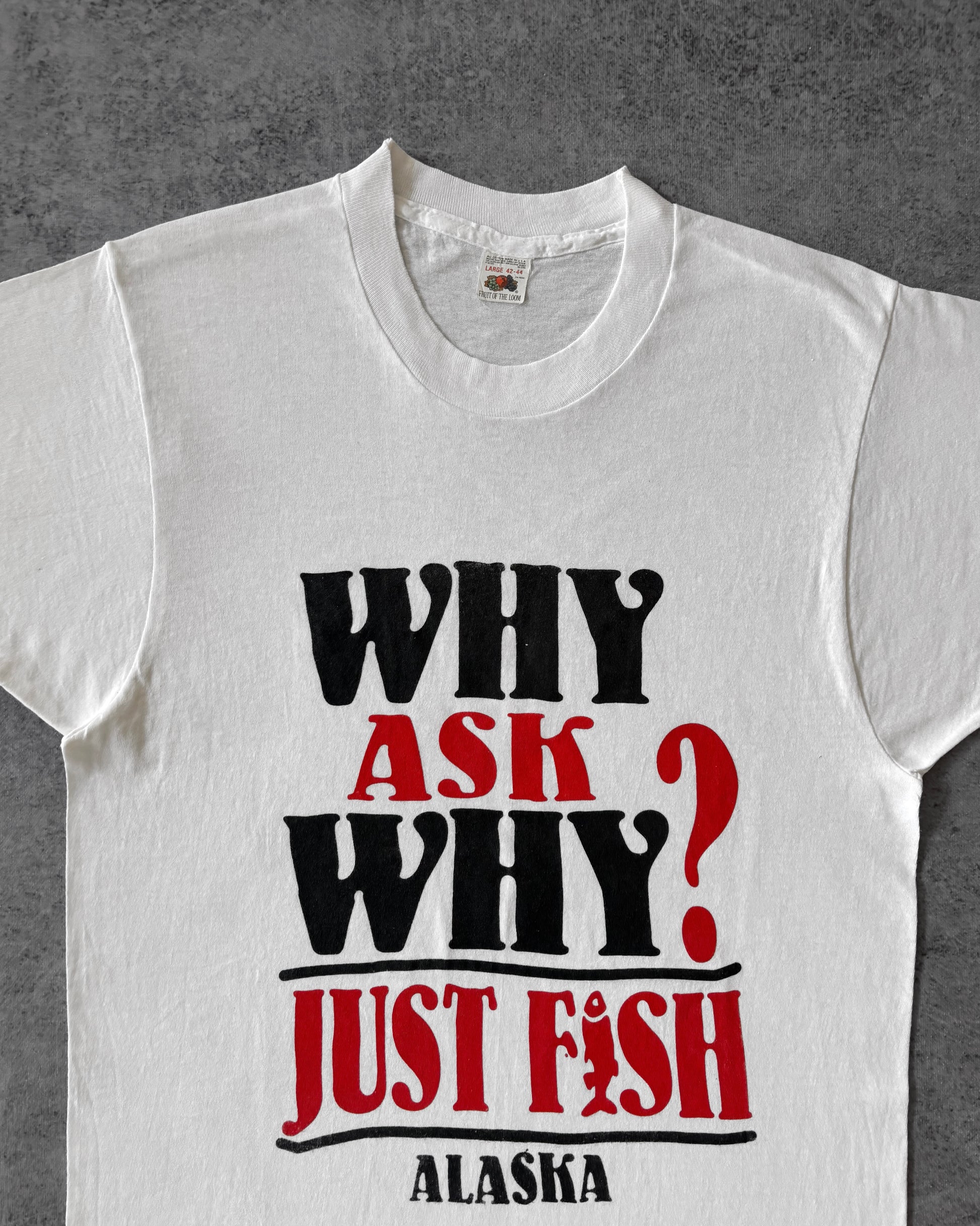 Vintage 70s Alaska “Why Ask Why Just Fish” T-Shirt – Fruit of the Loom Lof Tag – USA Made