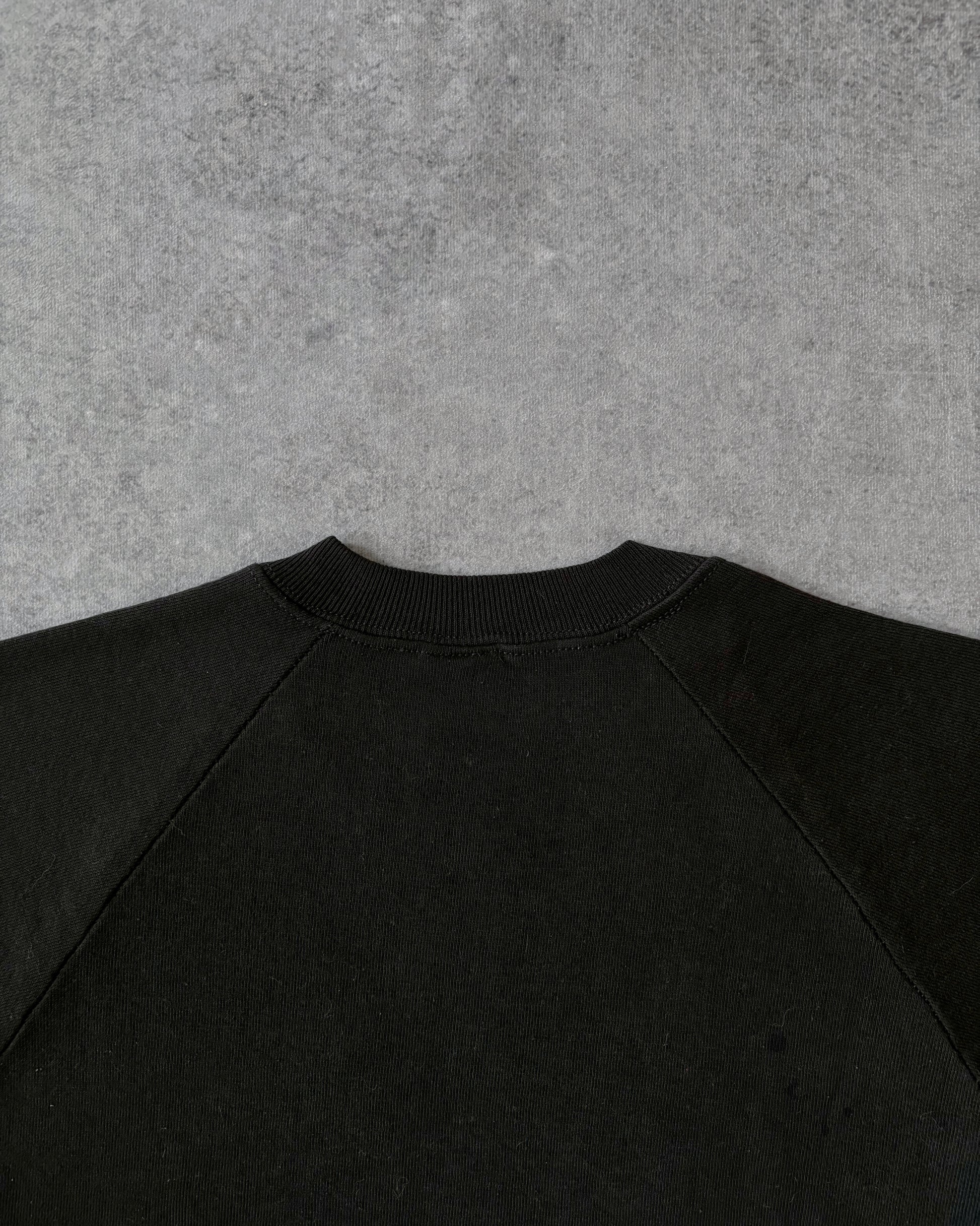 Maglia vintage Vanderbilt University degli anni ’80, prodotta negli Stati Uniti da Jerzees by Russell. Presenta una base nera intensa con audace stampa dorata in stile collegiale sul petto, che mostra il sigillo di Vanderbilt e il ritratto di Cornelius Vanderbilt.