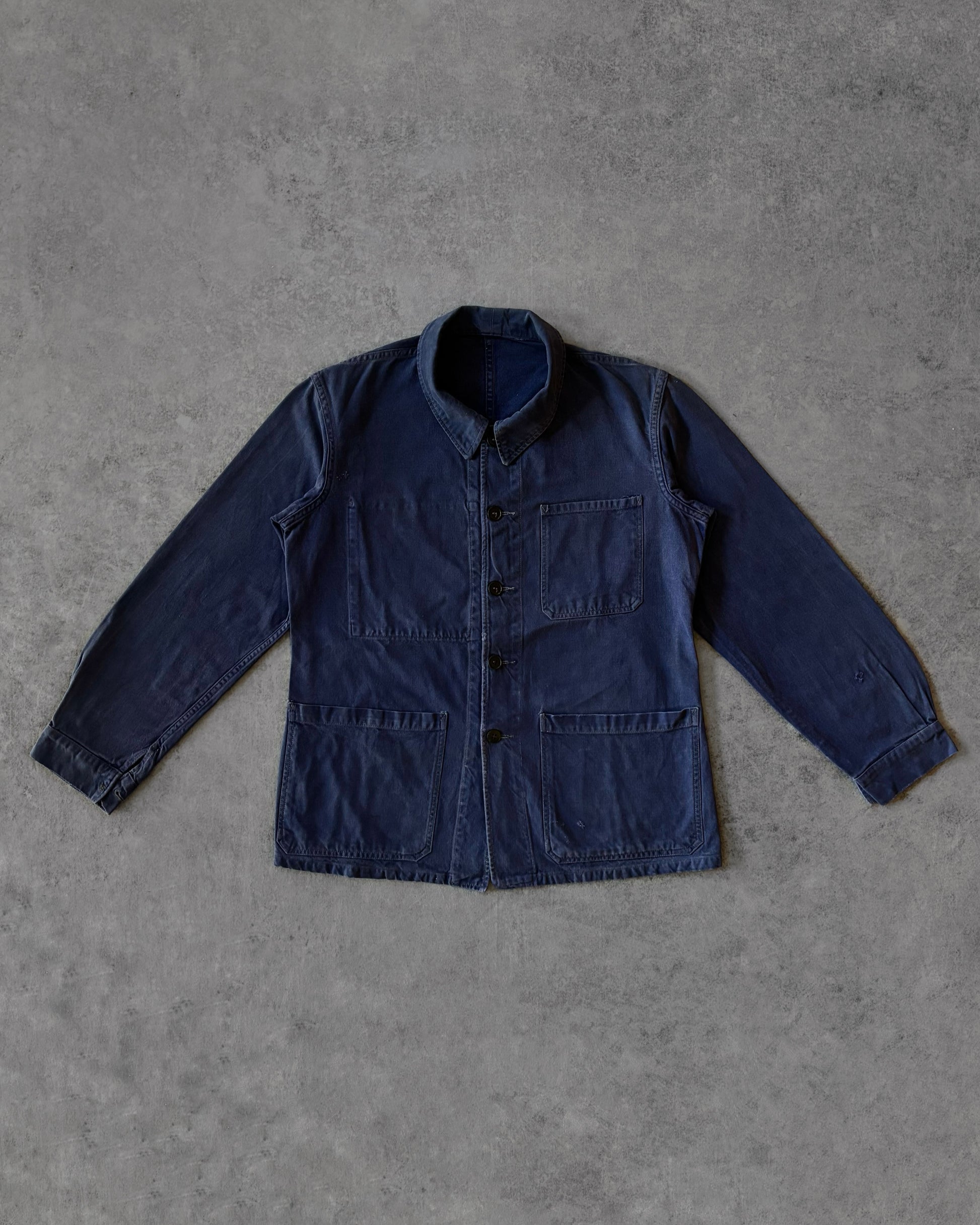 Giacca da lavoro francese vintage “Bleu de Travail” di metà Novecento, databile tra gli anni ’40 e ’60.