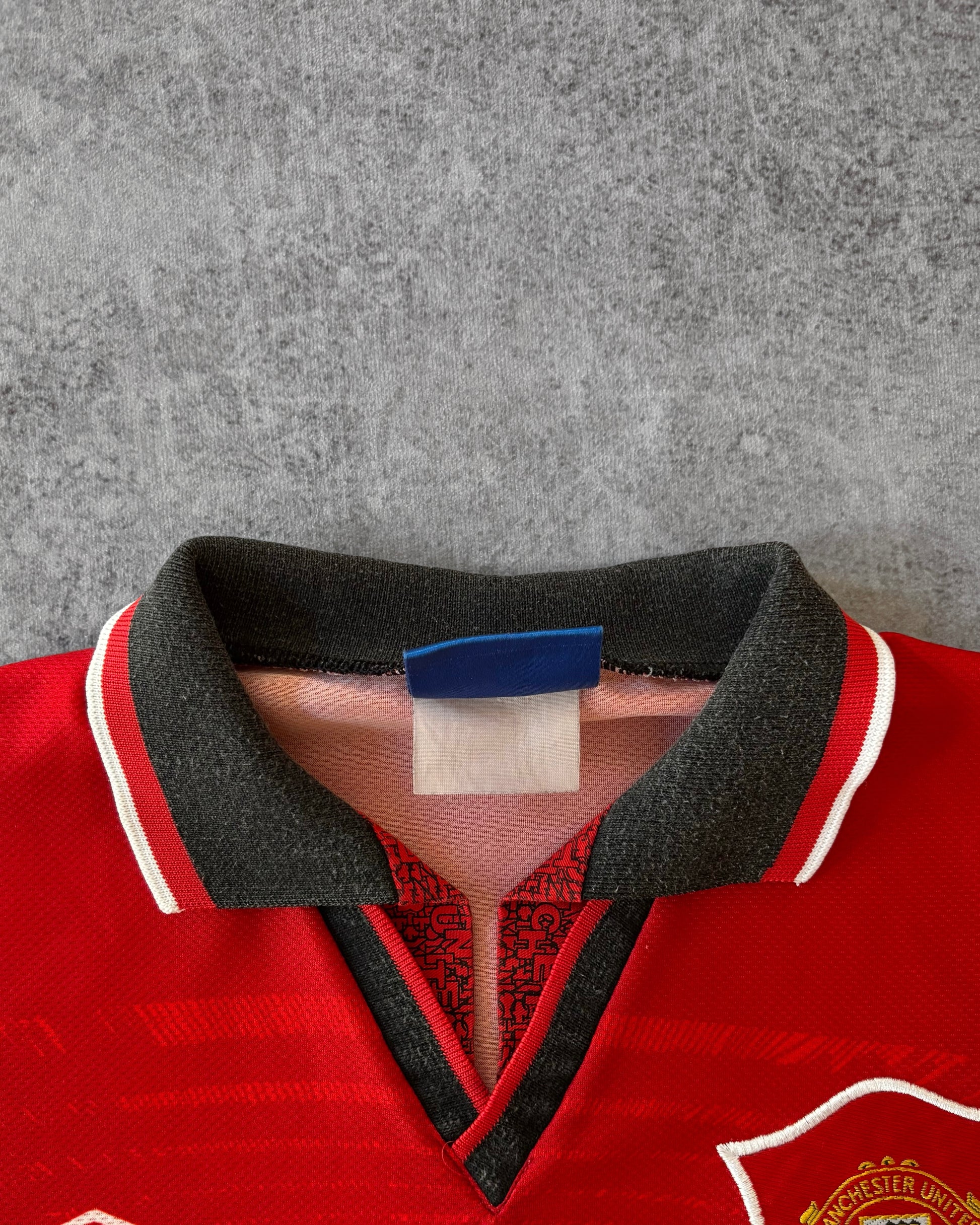 Questo modello fu indossato nel pieno dell’era Class of ’92, con stelle come Cantona, Giggs, Keane, Scholes, Ince e Hughes.