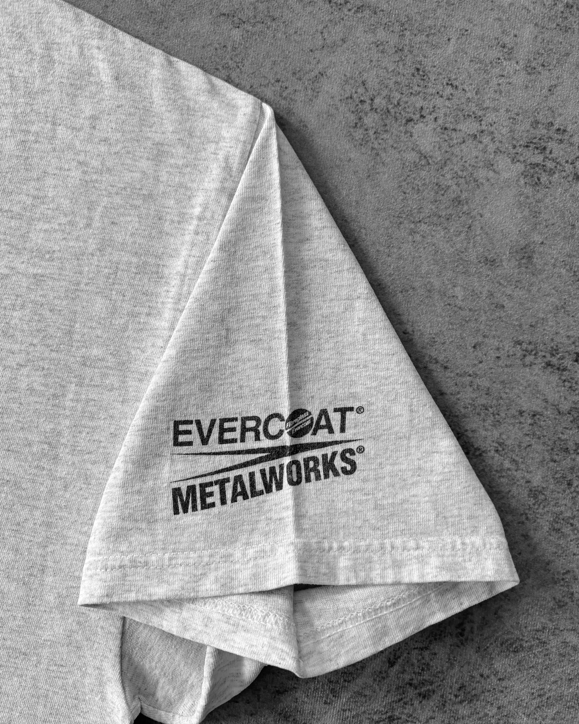 Un vivace frammento della cultura automobilistica Y2K, sponsorizzato da Evercoat Metalworks e stampato su una classica t-shirt grigio mélange Port & Company.